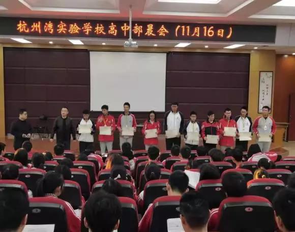 優秀的成績離不開良好的習慣,為了表彰先進,鼓勵進步,展示杭州灣學子學習奮發向上的精神風貌,發揮優秀與模范的引領作用,劉廣興副校長宣讀了本周獲獎的文明班級和文明宿舍,并請生活老師為他們頒獎。同時劉校長也總結了本周在紀律衛生方面取得的成績和存在的問題。
